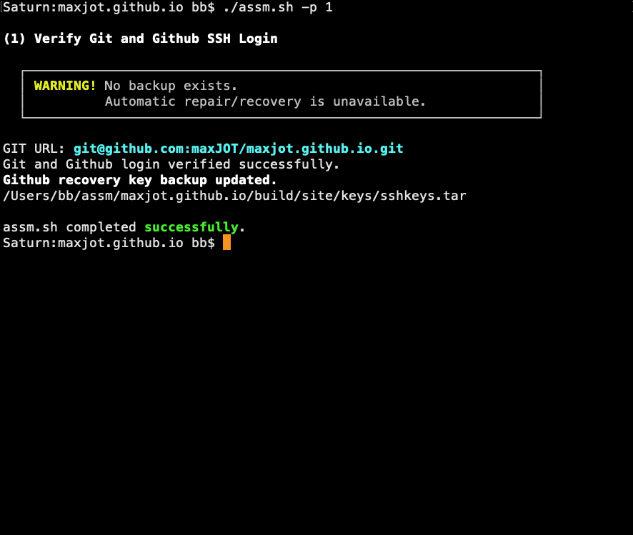 #==================================================================== # Filespec: /Users/dude/assm/maxjot.github.io/build/site/git.conf # Site Name: maxjot.github.io # Date: 05-Mar-26 #==================================================================== # # Set GIT_URL to your remote GitHub repository used to publish the site # (GitHub Pages), e.g.: "git@github.com:maxJOT/maxjot.github.io.git" GIT_URL="git@github.com:maxJOT/maxjot.github.io.git" # Set SITE_URL to the location where your site is published. SITE_URL="https://maxjot.github.io" # SSH_KEYPAIR defines the names of the SSH keys for passwordless # secure GitHub authentication (SSH user equivalence). # See GitHub Docs – SSH authentication, for more info. SSH_KEYPAIR=( id_ed25519 id_ed25519.pub )